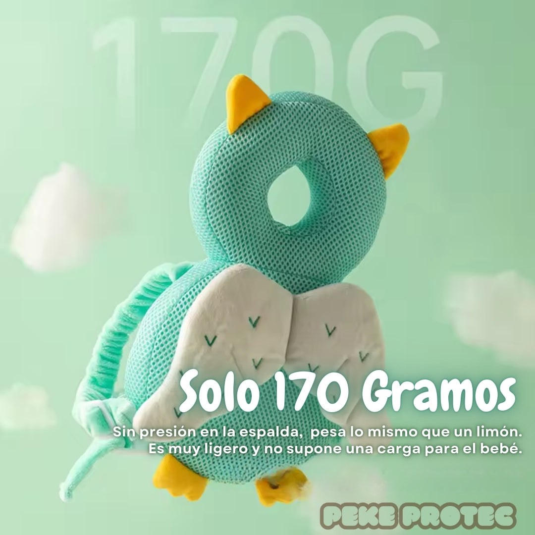 Con solo 170 gramos de peso (lo mismo que un limón), nuestro protector no representa ninguna carga. Tu bebé casi ni notará que lo lleva puesto, pero estará protegido en cada movimiento.